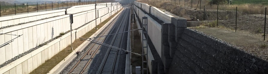 Mostní opěry mostu přes železnici ze štípaných betonových tvarovek (Královec)
