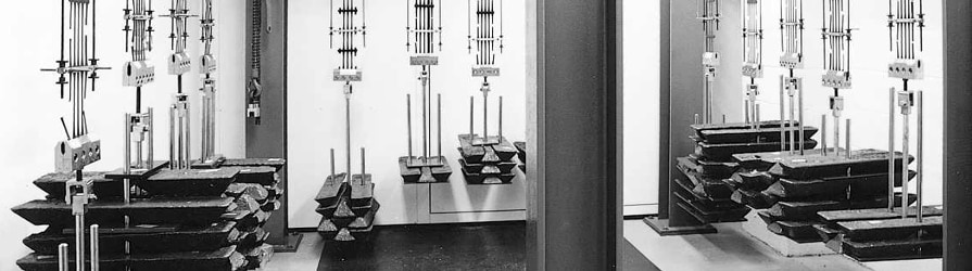 Laboratoř na měření creepu geomříží a detail jednoho z vzorků